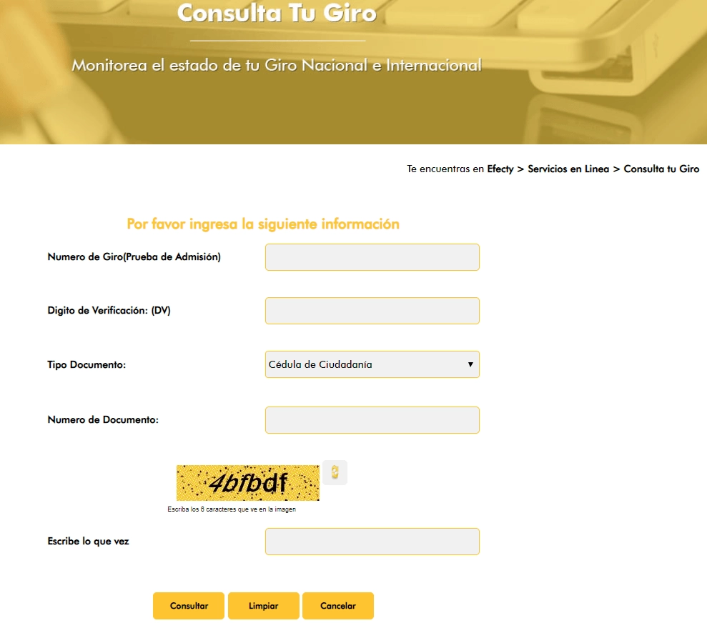 Consultar giro en Efecty por cédula es una acción realmente simple de tal forma que, siguiendo el siguiente trámite tendrás la posibilidad de llevarlo a cabo, solo tienes que intentarlo: