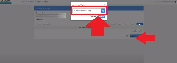 En el siguiente formulario ingrese el número de su ticket y luego presione en "Agregar".